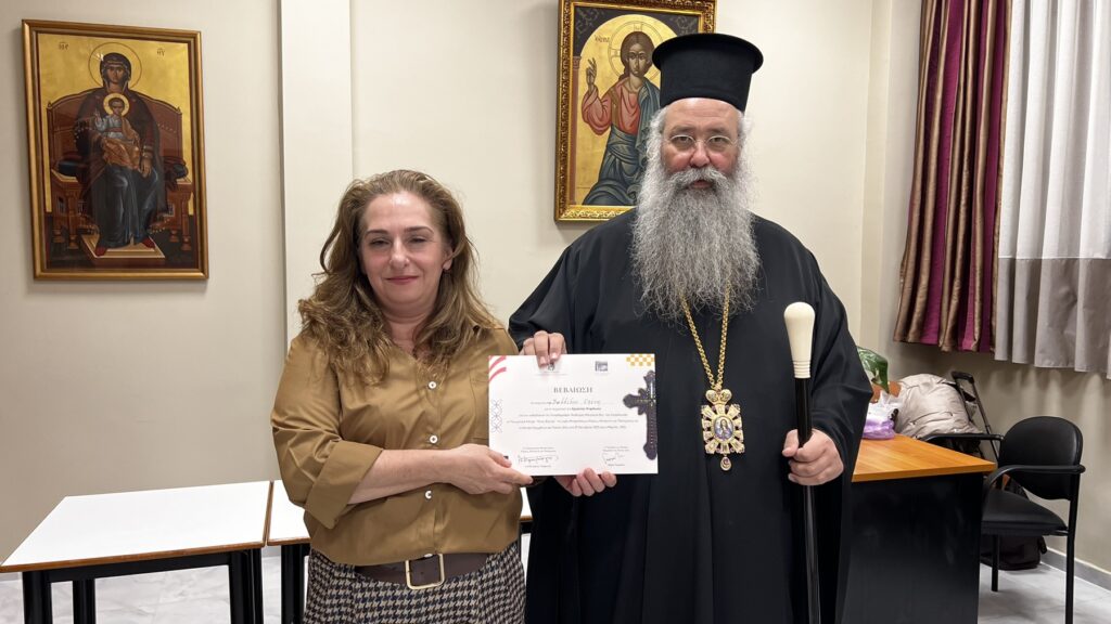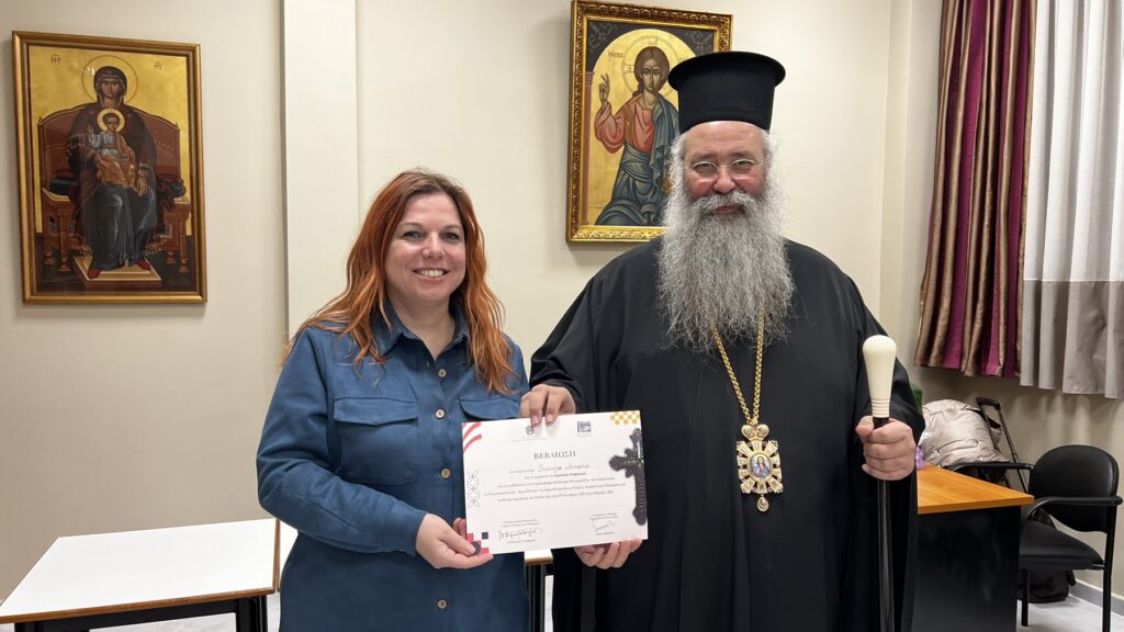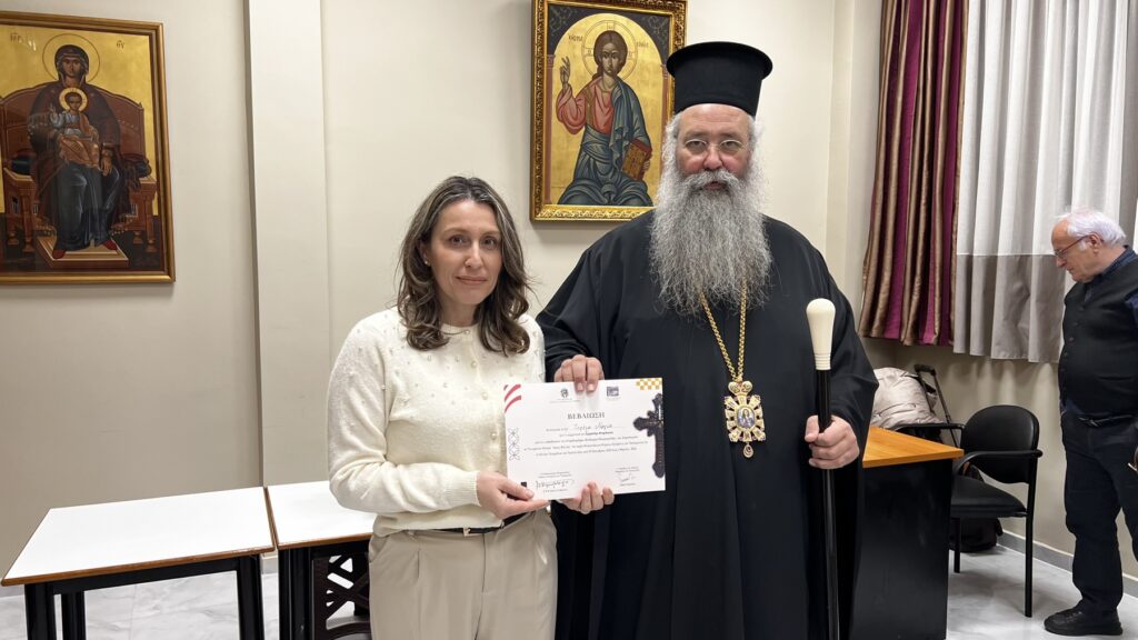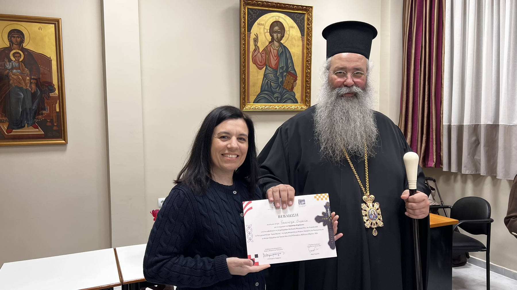 Η ολοκλήρωση του σεμιναρίου πραγματοποιήθηκε την Τετάρτη 4 Μαρτίου, με την απονομή των βεβαιώσεων συμμετοχής από τον Σεβασμιώτατο Μητροπολίτη Κίτρους, Κατερίνης και Πλαταμώνος κ. Γεώργιο και την Πρόεδρο του Κέντρου Γραμμάτων και Τεχνών Δίου κα Μαρία Γκριμούλα.