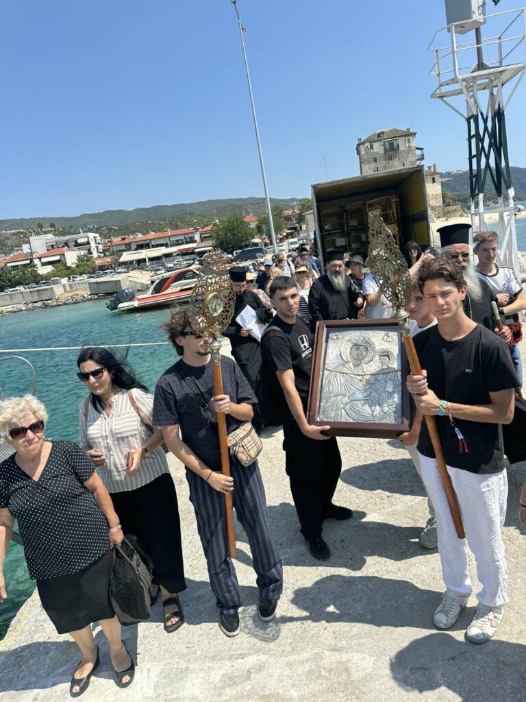 Ειδικά φέτος, ο προσκυνηματικός αυτός Περίπλους στο Περιβόλι της Παναγίας μεταφέρθηκε επί του πλοίου η ιστορική και θαυματουργή εικόνα της Παναγίας Πέτρας, εφέστια εικόνα της Ιεράς Μονής, προς ευλογία των πιστών. Η ενέργεια αυτή αποτέλεσε πράξη ευχαριστίας προς την Υπεραγία Θεοτόκο, καθώς η Πολιτεία επέστρεψε στην Εκκλησία την ιστορική Ιερά Μονή Πέτρας Ολύμπου, 100 χρόνια μετά τη δήμευσή και τη μετατροπή της σε Σανατόριο και Ψυχιατρείο (1925-2025).