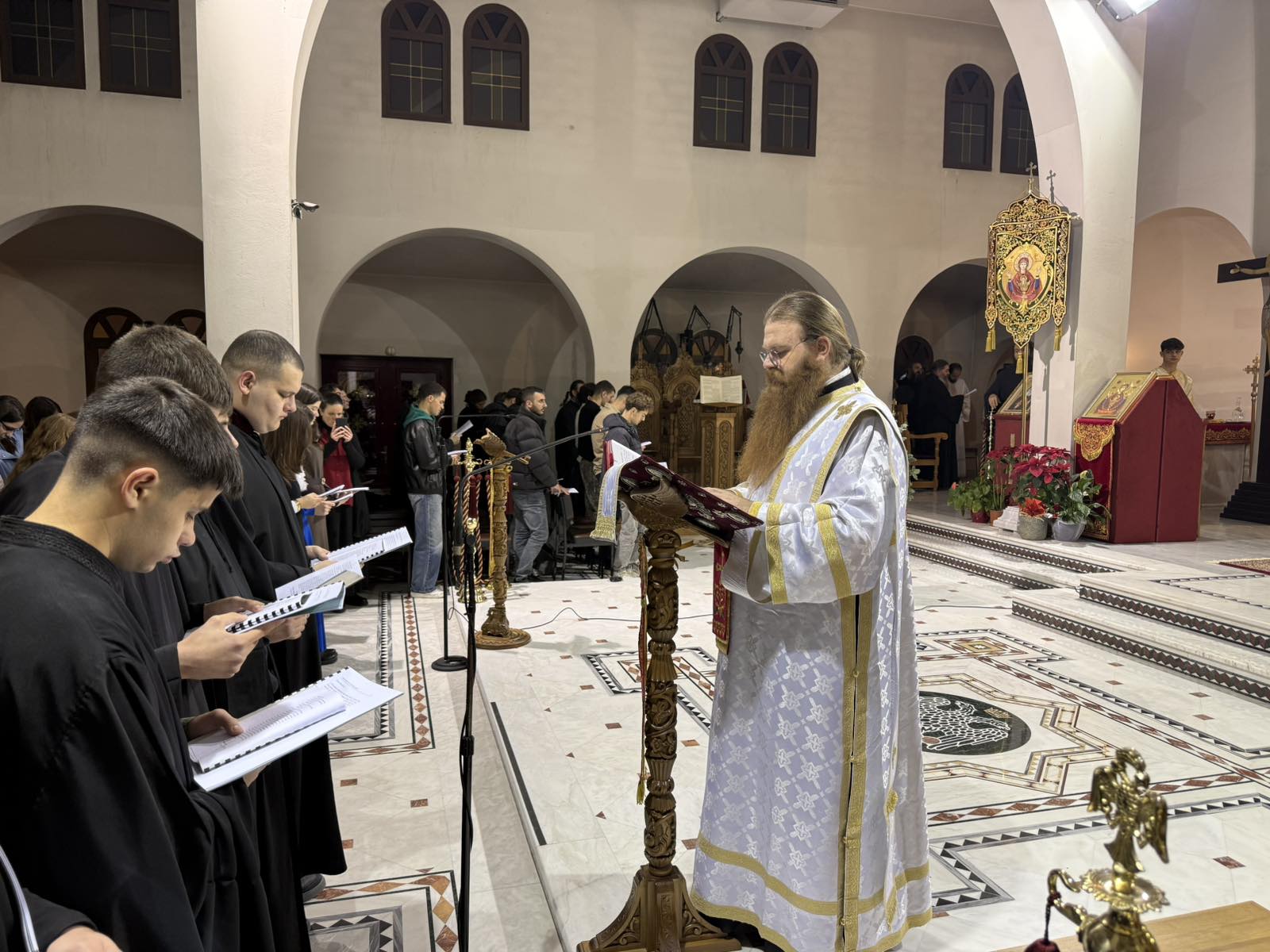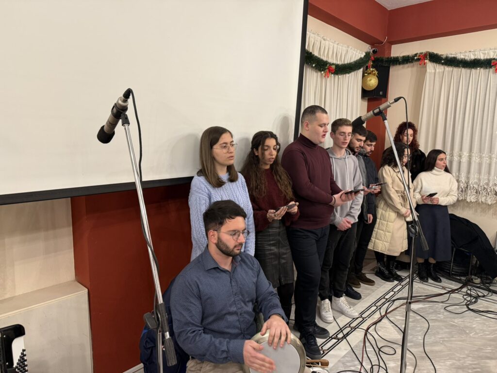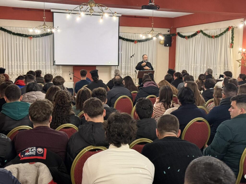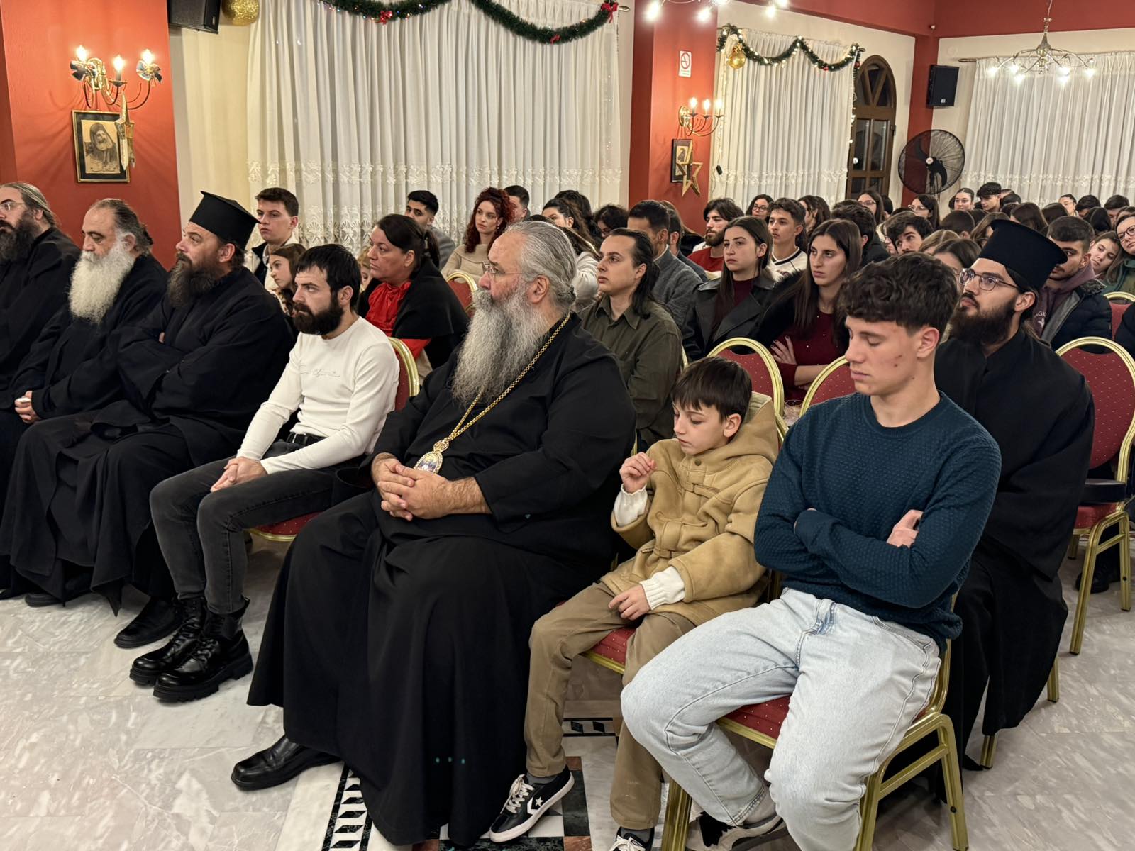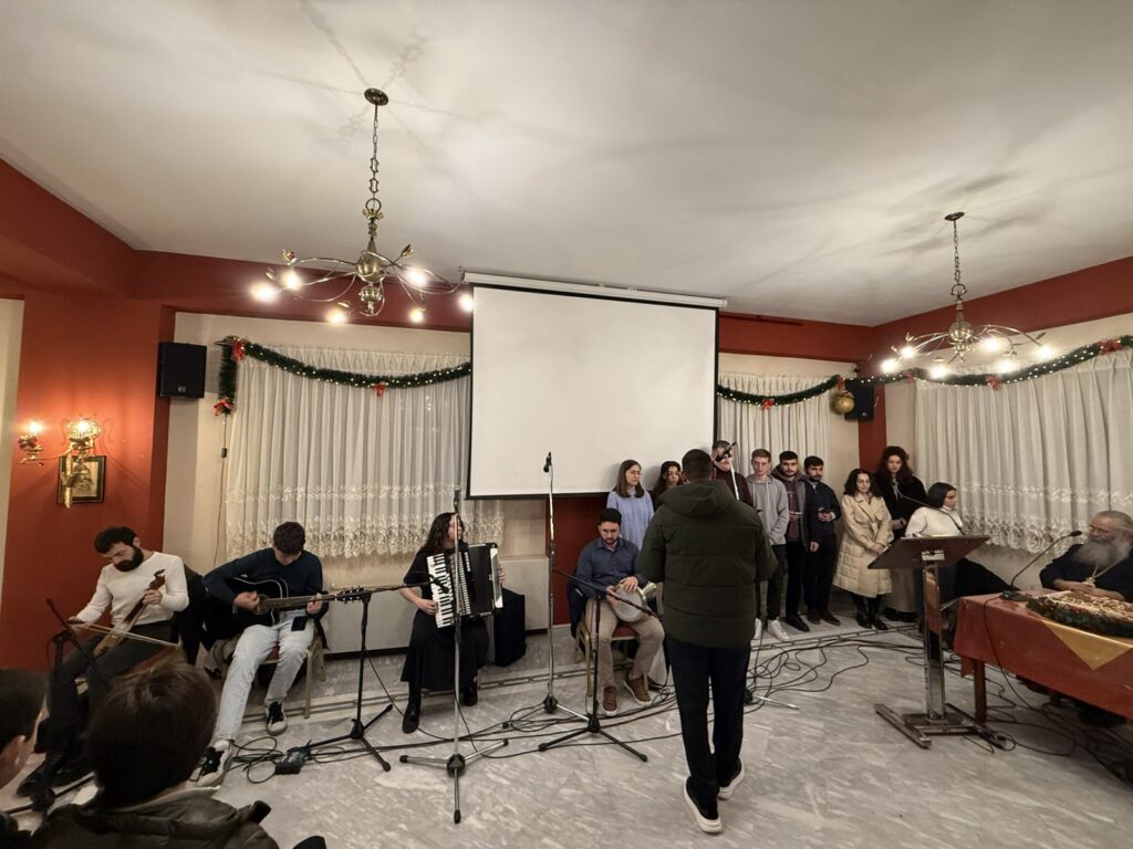 Η Σύναξη Νέων επενδύθηκε με ύμνους και κάλαντα από πολυμελή χορωδία και ορχήστρα, που συγκροτήθηκε από στελέχη του νεανικού έργου.